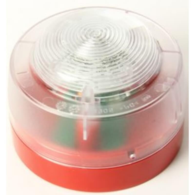 Konventionaalinen vilkku, sisätiloihin seinälle tai kattoon asennettava, EN54-23 mukainen, IP21C, hälyttimen väri punainen, vilkun valon väri punainen, linssin väri valkoinen, sisältää matalan asennuskannan