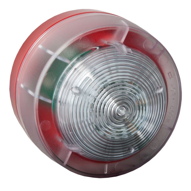 Konventionaalinen vilkku, sisätiloihin seinälle tai kattoon asennettava, EN54-23 mukainen, IP21C, hälyttimen väri punainen, vilkun valon ja linssin väri valkoinen, sisältää matalan asennuskannan