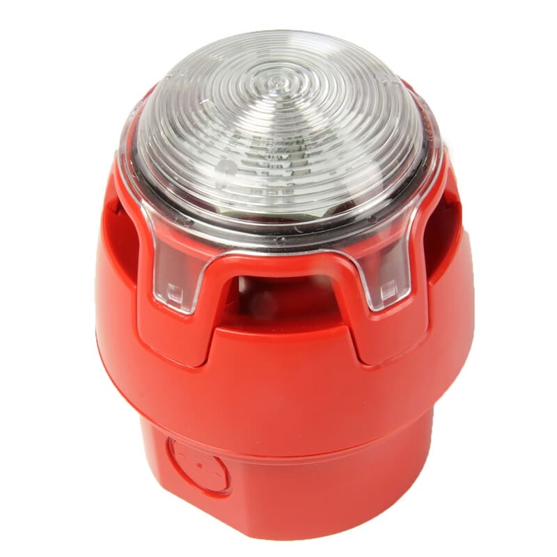 Vilkkusireeni, CWSS-RR-W3-, IP65, konventionaalinen Konventionaalinen vilkkusireenisisätiloihin seinälle tai kattoon asennettava, sireeni EN54-3 ja vilkku EN54-23 mukainen (Open class), IP65, sireeniin valittavissa 32 hälytysääntä DIP- kytkimillä, hälyttimen väri punainen, vilkun valon väri punainen, linssin väri valkoinen, sisältää syvän asennusrasian (IP65), ei sisällä kaapelin läpivientiholkkeja