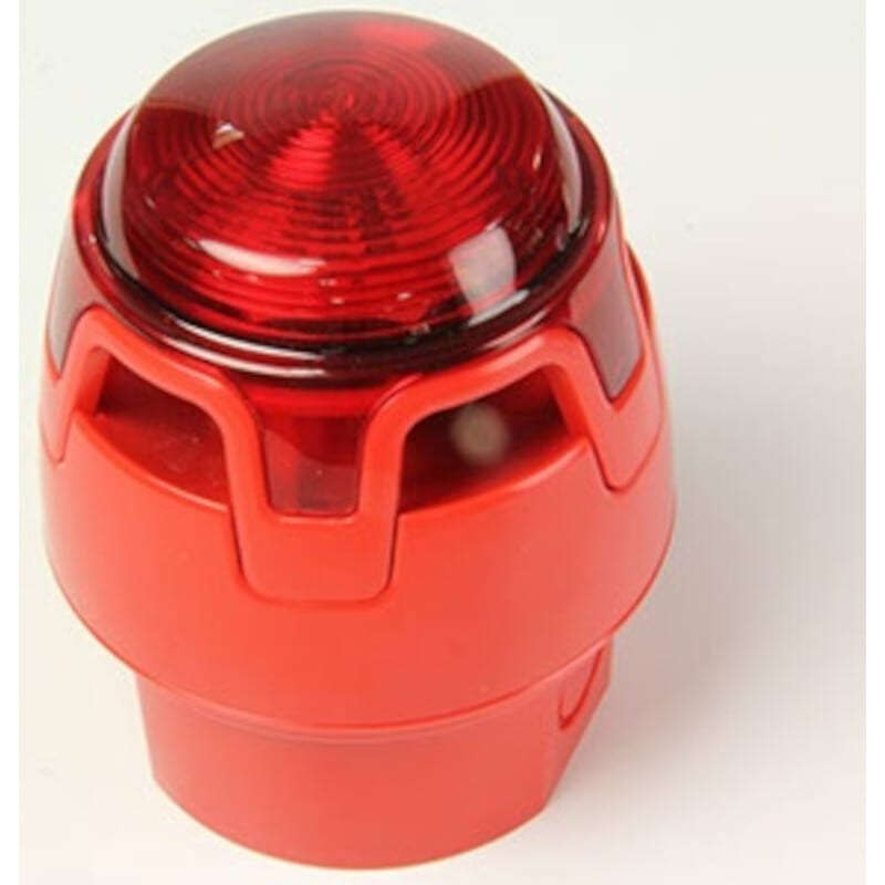 Konventionaalinen vilkkusireeni IP65, sisätiloihin seinälle tai kattoon asennettava, sireeni EN54-3 ja vilkku EN54-23 mukainen, sireeniin valittavissa 32 hälytysääntä DIP- kytkimillä, hälyttimen väri punainen, vilkun valon väri punainen, linssin väri valkoinen, sisältää syvän asennusrasian (IP65) ei sisällä kaapelin läpivientiholkkeja