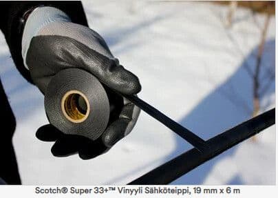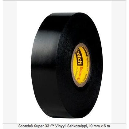 Erittäin mukautuva ja joustava teippi, joka takaa kosteustiiviin sähköisen ja mekaanisen suojauksen mahdollisimman pienellä määrällä teippiä Suorituskyky pysyy samana ympäristön lämpötilan ollessa jopa 105 °C Soveltuu käytettäväksi kylmissä olosuhteissa ja säilyy murtumattomana jopa -18 °C:n lämpötilassa UL-, CSA- ja VDE-hyväksytty Scotch®-vinyylisähköteippi Super 33+ on markkinoiden johtava, alkuperäinen PVC-eristysteippi. Tämä ammattikäyttöön tarkoitettu teippi on erittäin mukautuvaa ja joustavaa, mikä takaa kosteustiiviin sähköisen ja mekaanisen suojan. Kaikkien 600 V:n luokituksen saaneiden johtojen ja jatkoskaapeleiden liitäntöjen pääasiallista sähköeristystä varten suunniteltu Scotch®-vinyylisähköteippi Super 33+™ on markkinoiden johtava, alkuperäinen PVC-eristysteippi. Tämän ammattikäyttöön tarkoitetun teipin joustavan selkämateriaalin ja lujan liima-aineen ansiosta teippi takaa kosteustiiviin sähköisen ja mekaanisen suojauksen mahdollisimman pienellä määrällä teippiä. Tämä jopa -18 °C:n lämpötilassa käytettäväksi sopiva teippi säilyttää mukautuvuutensa ja joustavuutensa murtumatta. Sen suorituskyky pysyy samana ympäristön lämpötilan ollessa jopa 105 °C.