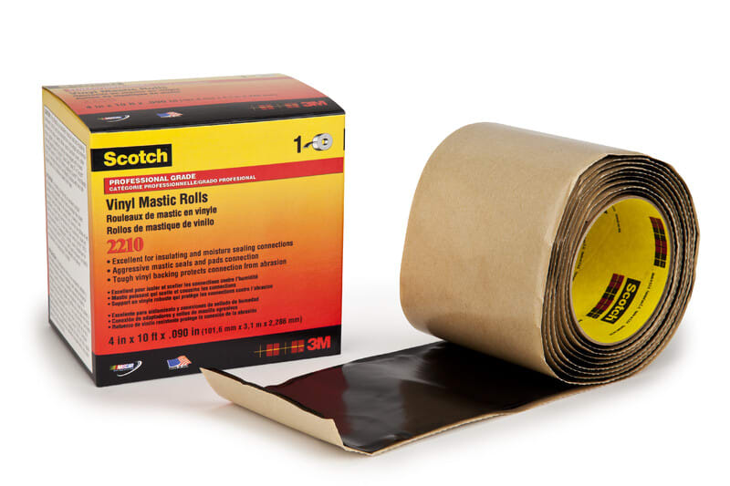 Scotch® Mastiktejp 2210 är utformad för att isolera och fukttäta alla anslutningar på upp till 600 volt och ha utmärkt beständighet mot nötning, fukt, alkalier, syror, korrosion och varierande väderförhållanden (inklusive exponering för solljus).