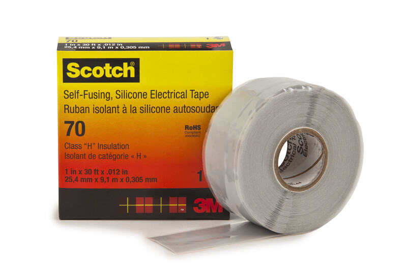 Silikonikumiselkä ja erittäin mukautuva silikoniliima Erinomainen valokaari- ja pintavirtakestävyys Kestää jopa 180 °C:n käyttölämpötilan RoHS 2011/65/EU -direktiivin mukainen Erittäin mukautuva Erinomainen välitön sulautuminen Scotch® Silikonikumi Sähköteippi 70, on 0,3 mm paksu, valokaari- ja pintavirtakestävyydeltään erinomainen teippi, joka on valmistettu itsesulautuvasta epäorgaanisesta silikonikumista. Tämä itsesulautuva teippi on erittäin mukautuva, ja sen sähkökestävyys on erinomainen. Käytä Scotch® Silikonikumi Sähköteippiä 70, suojaavana kääreenä päättäessäsi korkeajännitekaapeleita. Tämä itsesulautuva teippi on valmistettu epäorgaanisesta silikonikumista. Sitä voidaan työstää erittäin alhaisissa lämpötiloissa. Sen valokaaren ja pintavirran kestävyys ovat molemmat erinomaiset, ja sen sähkökestävyys on hyvä. Tämä erittäin mukautuva teippi sulautuu kohteeseen välittömästi eikä sitä tarvitse pidellä paikoillaan.