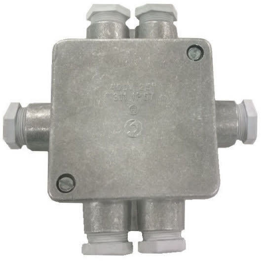 5x2 5 mm2 vaippaliittimet + maadoitusliitin. PK16 läpiv. Muoviset holkkitiivisteet. 89x89mm.