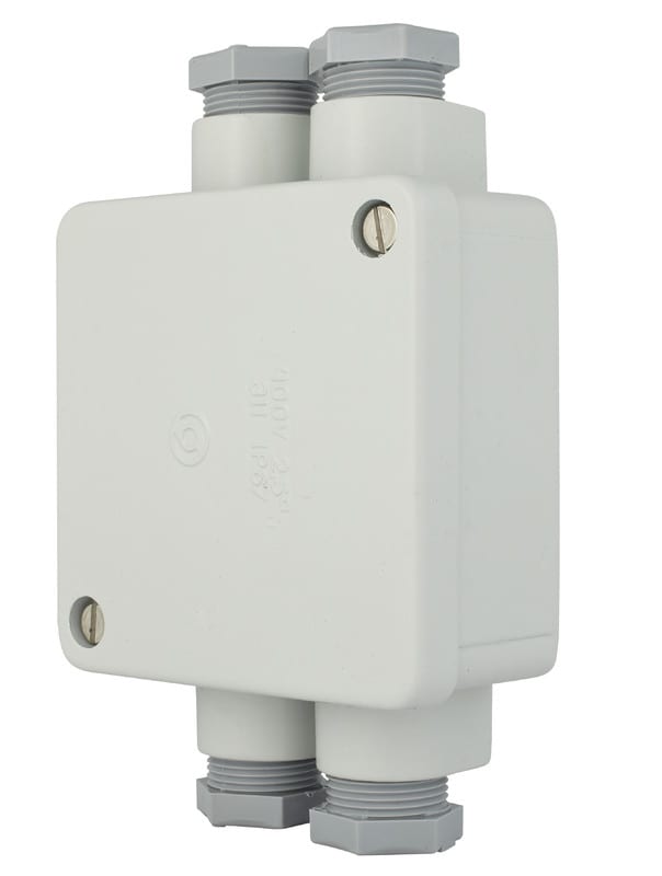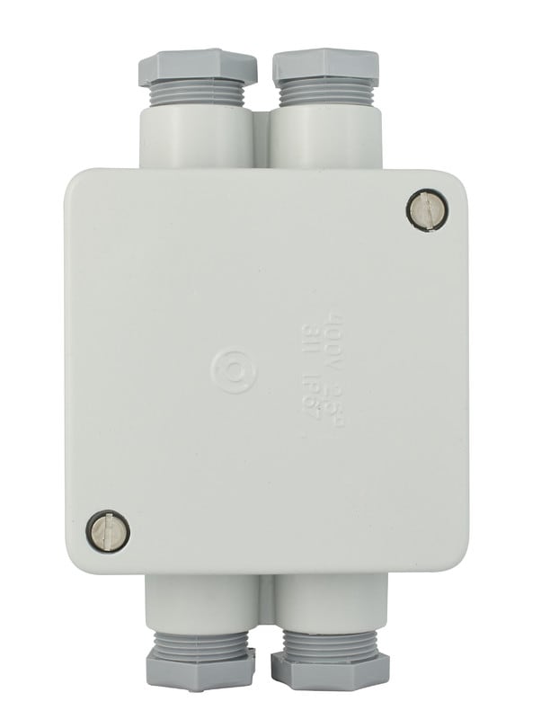 5x2 5 mm2 vaippaliittimet + maadoitusliitin. PK16 läpiv. Muoviset holkkitiivisteet. 89x89mm.
