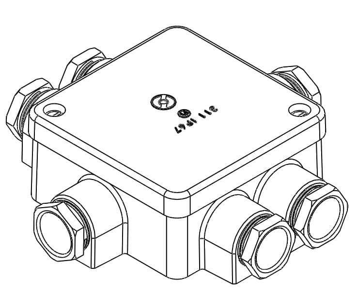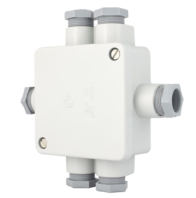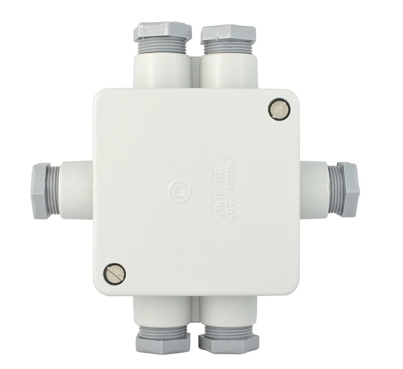 5x2 5 mm2 vaippaliittimet + maadoitusliitin. PK16 läpiv. Muoviset holkkitiivisteet. 89x89mm.