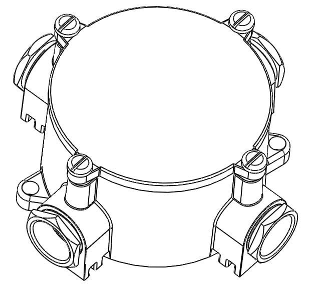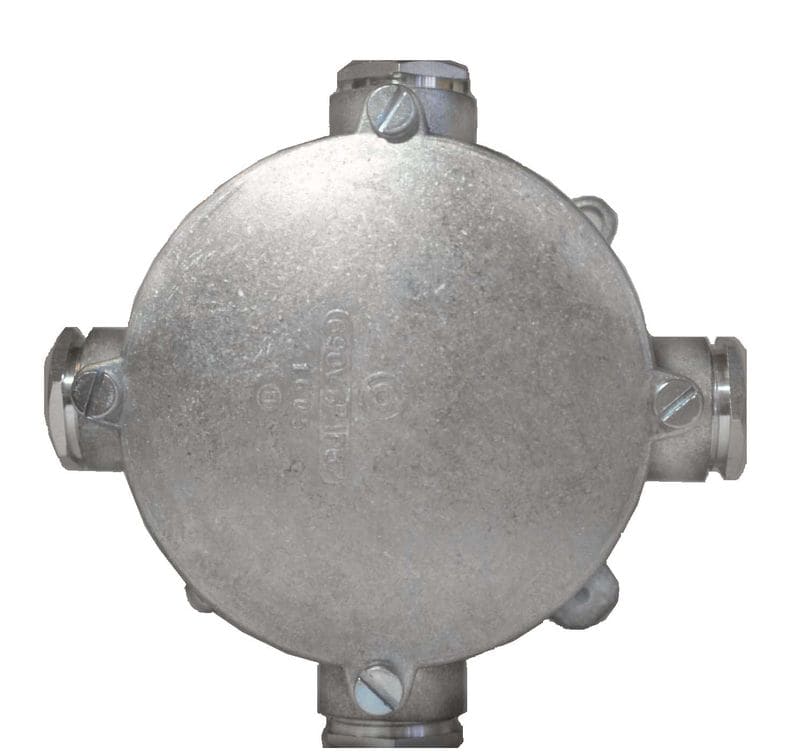 Silumiiniset Pyöreät silumiinirasiat, sisä-Ø 100mm. Metalliset PK 21 holkkitiivisteet, kaapeli Ø 18mm 1). Rasioissa 5x6 mm2 vaippaliittimet ja 6 mm2 maadoitusliitin. Maalatut mallit maalattu ruskealla epoximaalilla.