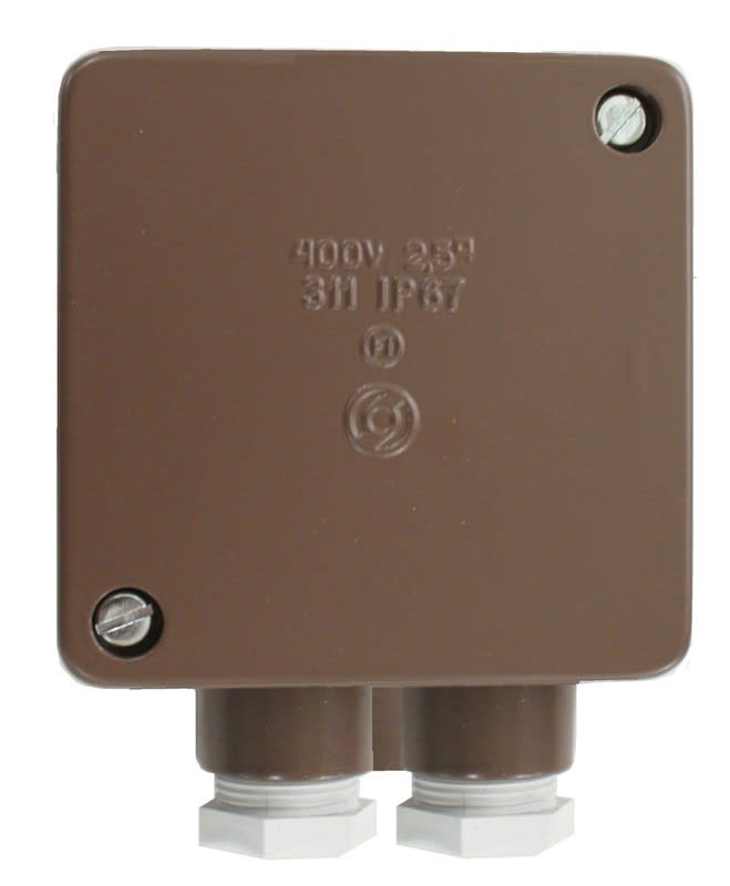 5x2 5 mm2 vaippaliittimet + maadoitusliitin. PK16 läpiv. Muoviset holkkitiivisteet. 89x89mm.