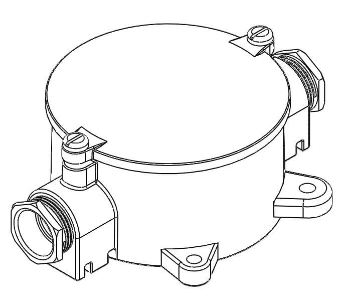 Rasia silumiinia, sisä-Ø 80mm. Alumiiset tai messinkiset (niklattu) PK 16 holkkitiivisteet, kaapeli Ø 10 mm. Rasiassa maadoitusliitin 2,5mm2. 5-napainen muovinen.Erilaisia piippuvaihtoehtoja saa merimalleina: Kuva piipuista. Merimallien tuotenumerot ovat 72 192 02 - 72 192 11