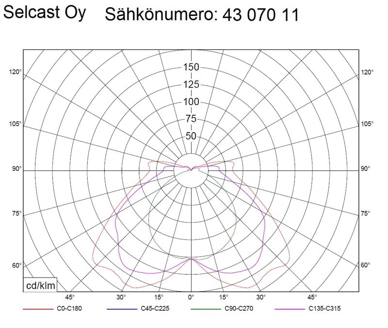 Runko epoksoitua kevytvalua, kupu polykarbonaattia. Valoteho = 616 lm