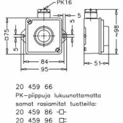 PK 16 läpivienti. Merimalleissa haponkestävät kansiruuvit ja nitriilikumitiivisteet. Lisätietoja Selcast tuotekortista.