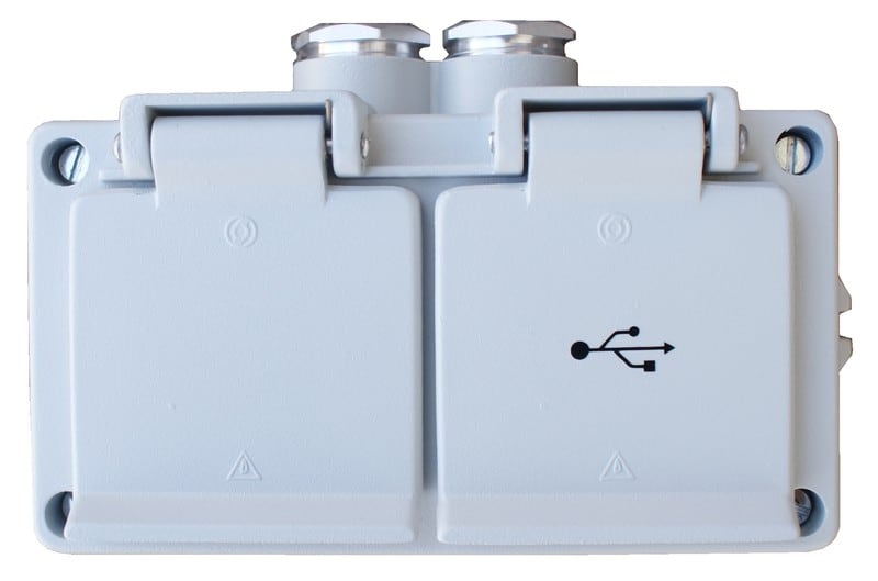 KAKSOIS-SCHUKO+USB 2xPK16 RAL7035 väri