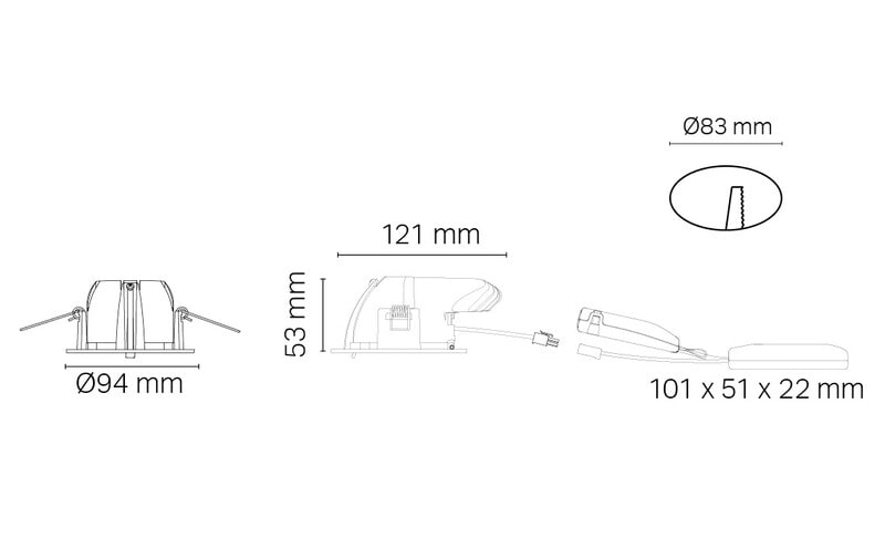 Alasvalo sisäkäyttöön. Sopii erityisesti seinien taulujen valaisuun ja esineiden tehostusvalaisemiseen ainutlaatuisen säädettävän rakenteen ja 40 asteen avauskulman ansiosta. Integroitu tehokas LED-valonlähde, Ra>95, SDCM: 2 sekä himmennettävä LED-liitäntälaite. Painevalettua jauhemaalattua alumiinia tai harjattua terästä, suojalasi. 42 asteen avauskulma. Upotussyvyys 53mm, upotusaukko Ø83mm, IP44.