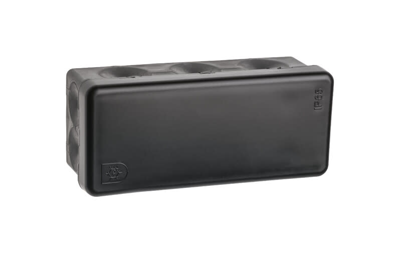 Pintakytkentärasia IP65. 10 integroitua kalvoa rasian ympärillä ja kaksi pohjassa. Toimitetaan ilman liittimiä.