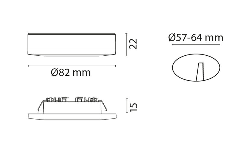 LED-kohdevalo kalusteisiin. Uppo- tai pinta-asennukseen irrotettavan kehyksen avulla. Valaisimen mukana 3 metrin liitosjohto säädettävään LED-liitäntälaitteeseen kytkemistä varten (liit.laite tilataan erikseen). Painevalettua alumiinia. IP54