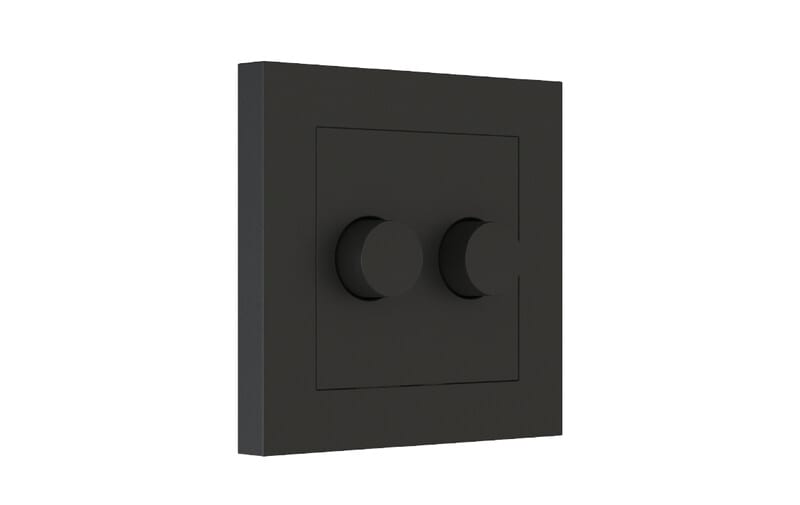 LEDDim 2x100 valosäätimen keskiölevy, 2 mustaa nuppia, 2 mutteria,mustan ulkokehyksen ja mustan sisäkehyksen