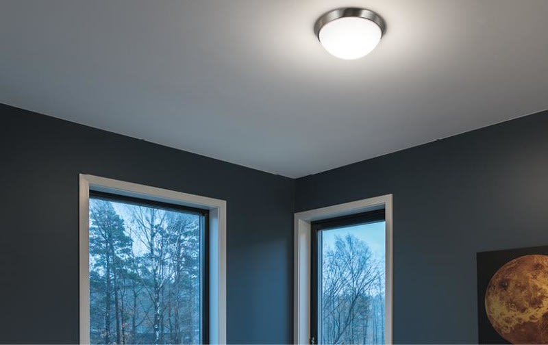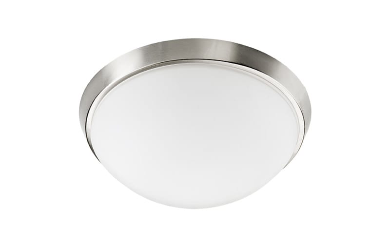 Pyöreä LED plafondi seinälle tai kattoon, jonka kupu on huurrettua lasia. Harjattu teräs tai valkoinen.
