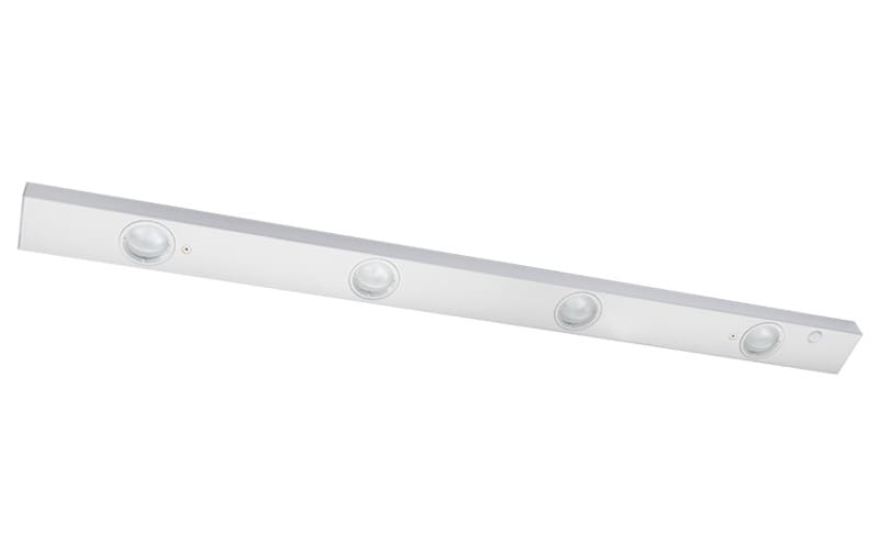 Keittiökalusteiden välitilan valaisin 1 - 4 spotilla. 4 eri pituutta vaihdettavilla LED-valonlähteillä, integroitu kytkin, korkea RA-indeksi, integroitu himmennettävä LED-liitäntälaite. Helppo asentaa ketjutettavilla pikariviliittimillä. 30 mm kokonaiskorkeuden ansiosta valaisin on erittäin huomaamaton. Saatavana myös DimToWarm toiminnolla.
