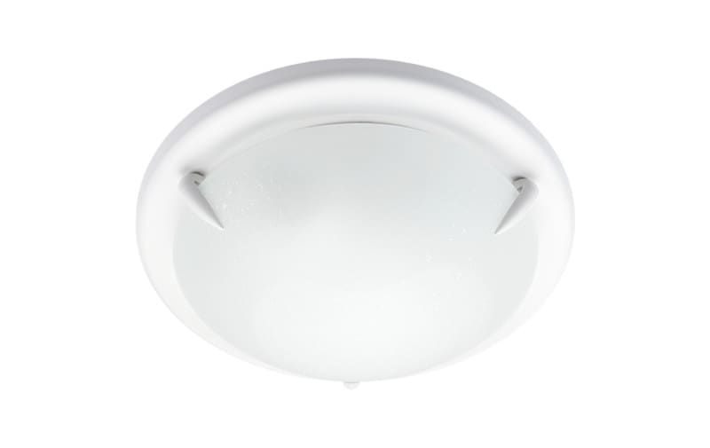 Pyöreä kattovalaisin, jossa on himmeä lasikupu ja kehys
