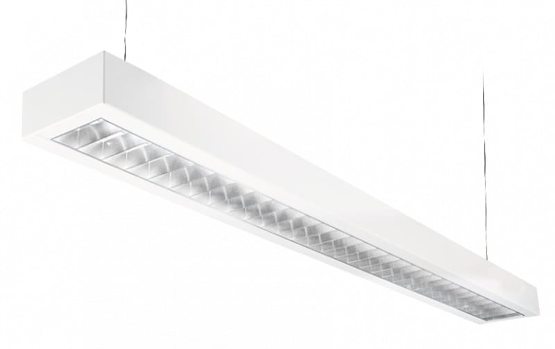 Pinta/ripustusvalaisin, 3000K tai 4000K. Useita tehovaihtoehtoja 1200mm ja 1500mm pituuksilla. Valkoiseksi jauhemaalattua terästä. Alumiininen kaksoisparabolinen satiinimatta matalaluminassiritilä, ei himmennettävä ja himmennettävä (DALI). Valojako suora ja suora/epäsuora. Suoran valonjaon valaisimiin ripustussarja (4223480) tilattava erikseen. Valaisinripustuskiskoasennustarvike tilataan lisävarusteena