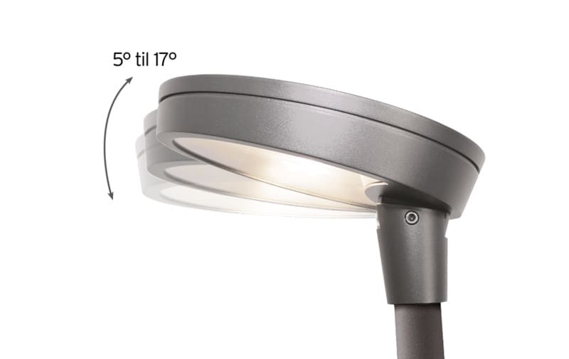 Pylväsvalaisin aluevalaistukseen, IP66. Runko painevalettua alumiinia, jauhemaalattu mustaksi tai harmaaksi. Valkoinen heijastin alumiinia, karkaistu suojalasi. Multilinssioptiikka M on suunniteltu erityisesti varmistamaan suoran valonjaon. Sisältää LED-liitäntälaitteen ja valonlähteen, eri tehoja. Varustettu 6 m liitosjohdolla. Asennus 60 mm pylvääseen. Suojausluokka II.Ilkivaltaluokitus IK09.