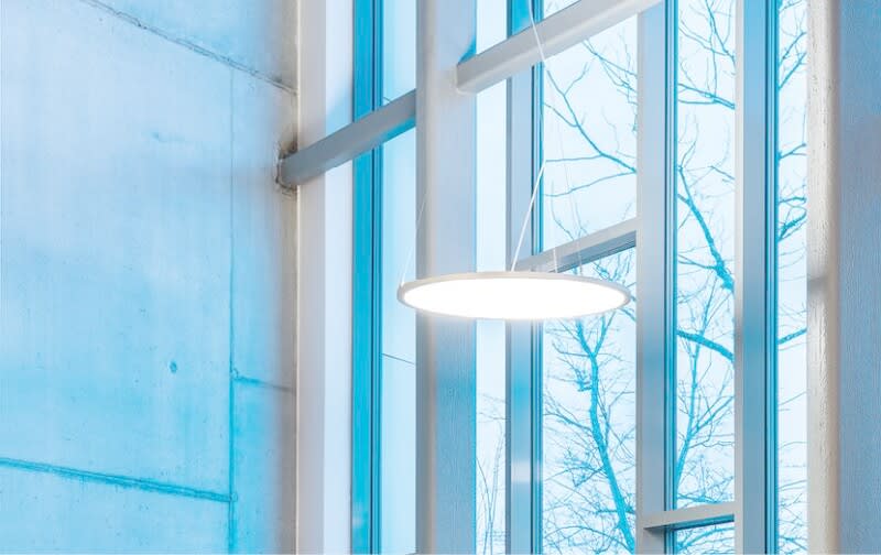 Sense 800 on hyvin tehokas, näyttävä, mutta sirorakenteinen julkisten tilojen riippuvalaisin ylä ja alavalolla. Valaisimen halkaisija 0,8m ja korkeus vain 18mm, jonka ansiosta valaisin näyttää leijuvan ilmassa. Mikroprismaoptiikka ja matala UGR