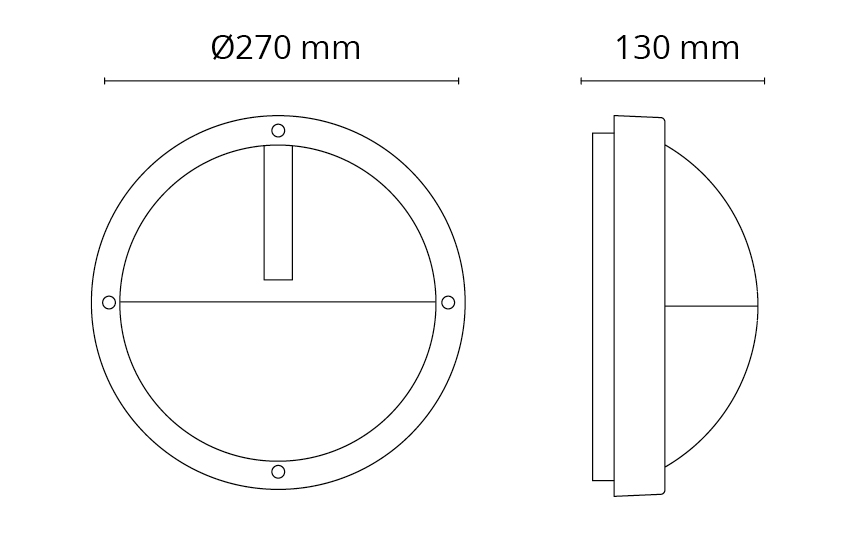 Pyöreä seinävalaisin, puolivarjostimella ja ylävaloaukolla, sisä- ja ulkokäyttöön. Painevalettua jauhemaalattua alumiinia. Värit valkoinen, musta ja grafiitti. Kupu UV-stabiloitua himmeää, polykarbonaattia. Ketjutettava, myös pintakaapelointimahdollisuus. Irroitettavat ketjutettavat pikaliittimet. Saatavana myös integroidulla hämäräkytkimellä. Valaisimille myönnetään 10 vuoden korroosionkestotakuu, IP65, ilkivaltaluokka IK10.