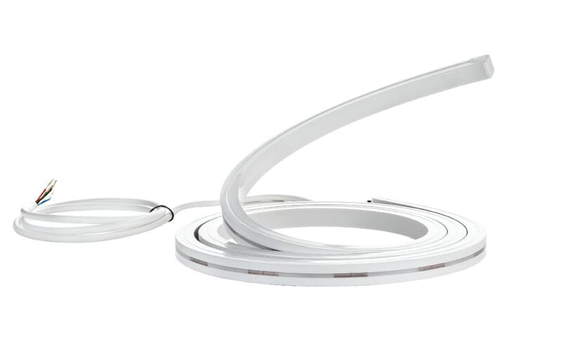 NeoStrip on RGB LED-nauha, jonka avulla voidaan luoda luovia valaistusratkaisuja sekä sisällä että ulkona. Sekoittamalla punaista, vihreää ja sinistä (RGB) eri tavoin voidaan luoda kaikki sateenkaaren värit. NeoStrip on koteloitu silikoniin ja siinä on vesitiivis IP65-suojaus. Profiilia tai suojausta ei tarvita. NeoStrip voidaan taivuttaa ja mukana toimitetaan pidikkeet helppoa asennusta varten. Se voidaan katkaista 6,3 cm:n välein, joten se voidaan räätälöidä jokaiseen yksittäiseen asennukseen. Leikattaessa voidaan asentaa päätykansi vedenpitävän IP 54 -suojauksen saavuttamiseksi. NeoStrip vaatii ohjaimen ja säätimen. Voit ohjata valoa kaukosäätimellä ja/tai impulssikytkimellä.
