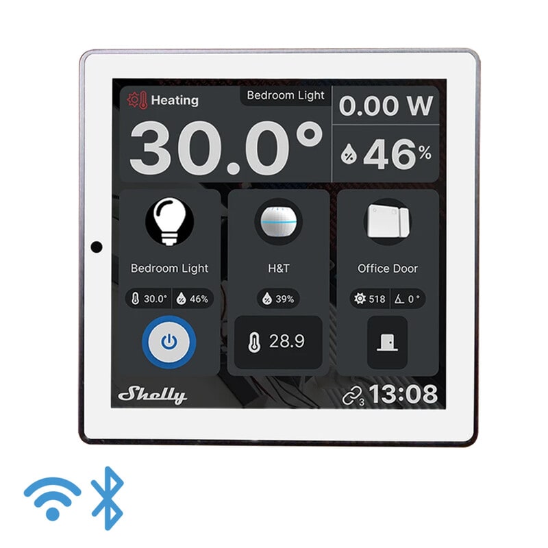 Shelly Wall Display White + BLU H&T Ivory Shelly Wall Display on 4 tuuman Android-pohjainen kosketusnäyttö, joka mahdollistaa kodin tai toimiston helpon hallinnan. Minimalistisen muotoilun, tyylikkään käyttöliittymän ja muokattavan aloitusnäytön ansiosta Shelly Wall Display ei vain sovi täydellisesti sisustukseesi, vaan se voidaan myös mukauttaa huoneen tarpeisiin.
