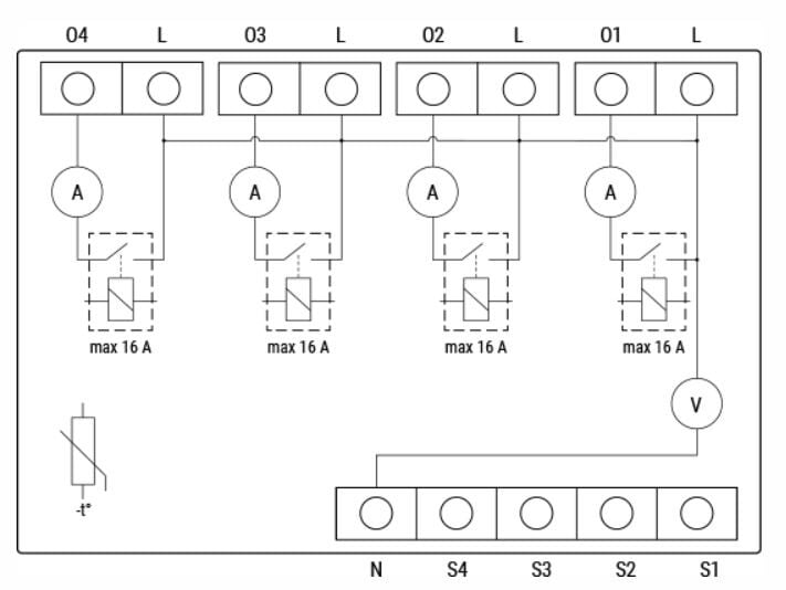 WiFi DIN relay 4x10A power mtr.