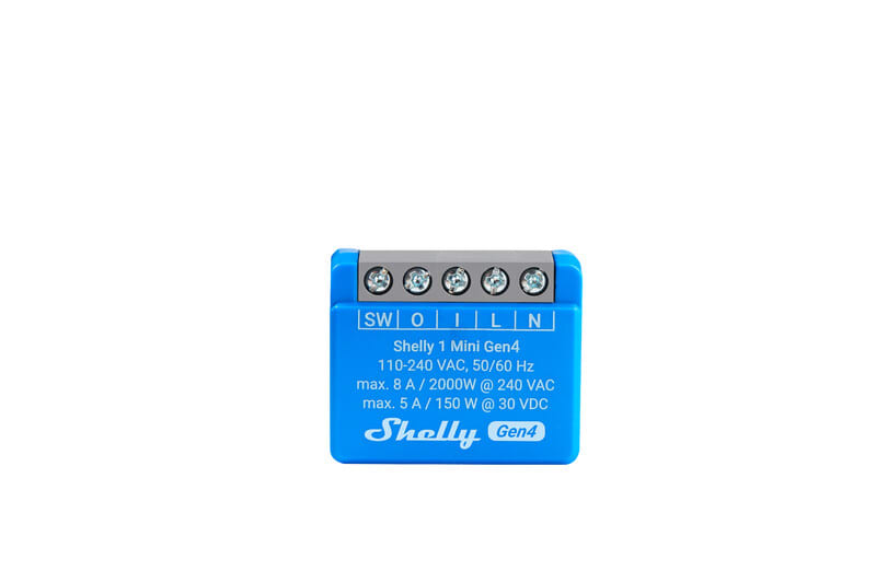 Shelly 1 Mini Gen4 toimii 110-240V AC jännitteellä. Potentiaalivapaa kosketin mahdollistaa esimerkiksi autotallin ovien, SG-Ready lämpöpumppujen ja kastelujärjestelmien ohjauksen. Yksittäinen kytkinliitäntä on ohjelmoitavissa moniin käyttötarkoituksiin: