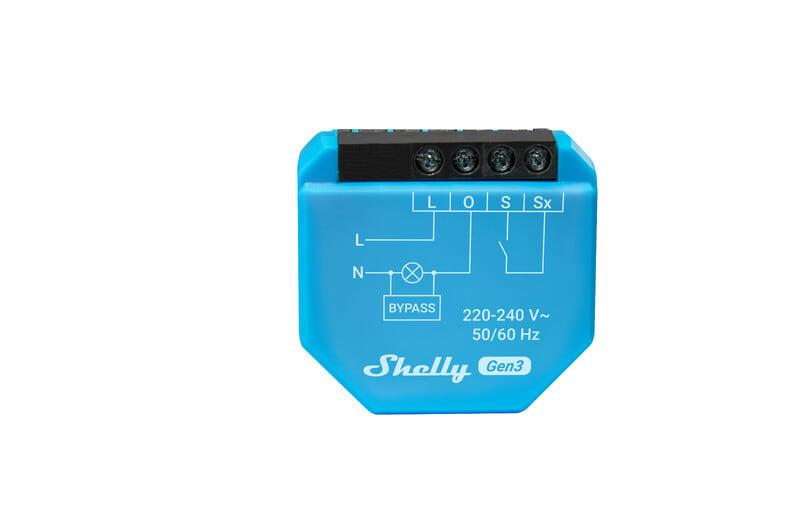 Shelly 1L Gen3:ssa on sisäänrakennettu 1,2A rele ja se pystyy ohjaamaan valaistusta jopa 275W asti. Laite saa käyttöjännitteensä 220–240V AC. Huomioithan, että mukana toimitettava bypass tulee asentaa kuorman rinnalle ja minimikuorma on 5W.