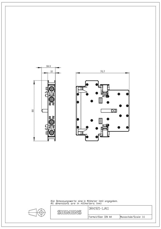 toinen sivuttainen apukosketin, 1 NO, 1 NC, ruuviliitin, kontaktoreille 3RT1
