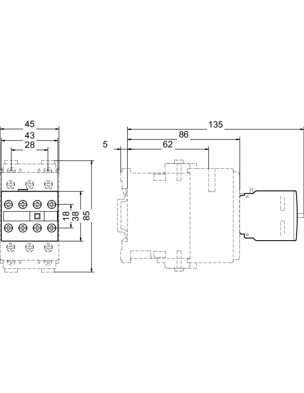 etupuolen apukosketin, 2 NO-kosketinta, 2 NC-kosketinta, ruuviliitin, kontaktoreille 3RT1, järjestysnumerot 5…8