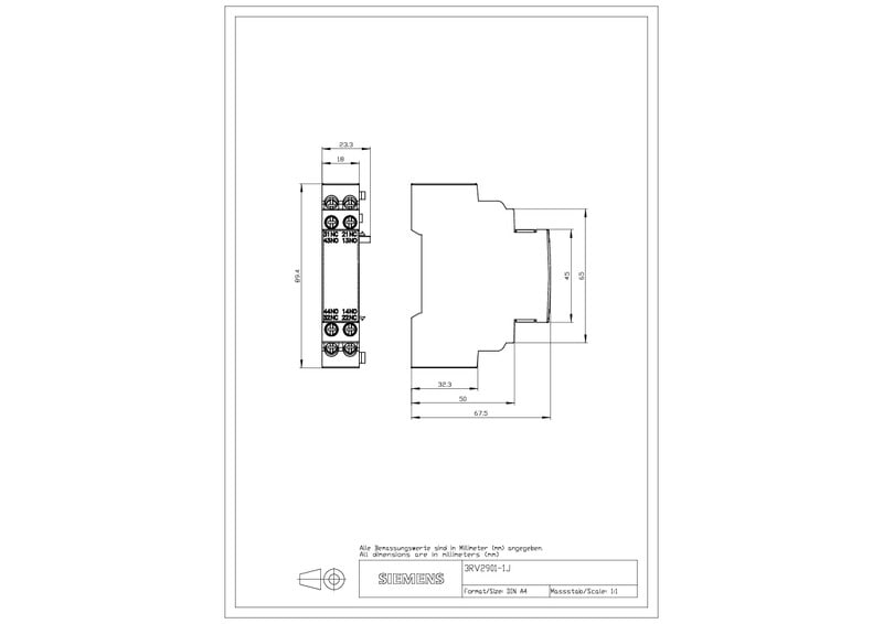 SIEMENS - Apukosketin 3RV2 2s 2a - 3RV2901-1J 1 2NO 2NC sivu S00-S3
