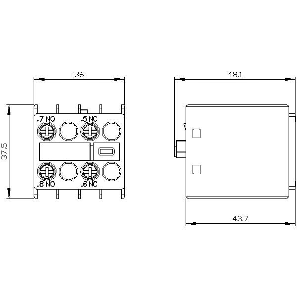 Apukosketin 11 U, edessä, 1 NO + 1 NC Virtatie 1 NO, --, 1 NC, -- 3RH ja 3RT ruuviliittimelle .7/.8, --/--, .5/.6 , --/--