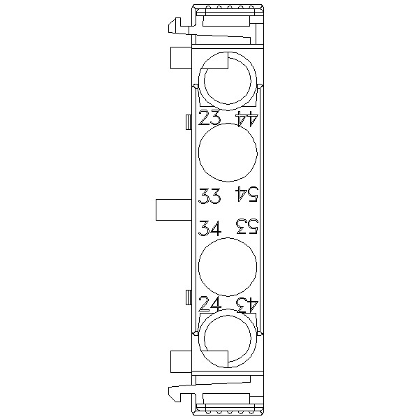 Apukosketin sivulle, 2 NO Virtatie 1 NO, 1 NO 3RH ja 3RT ruuviliittimelle R: 23/24, 33/34 L: 43/44, 53/54