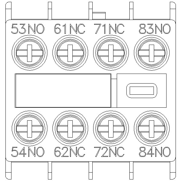 Apukosketin edessä, 2 NO + 2 NC Virtatie 1 NO, 1 NC, 1 NC, 1 NO kontaktorireleille Koko S00 ruuviliitin 53/54, 61/62, 71/72, 81/82 Fyysisesti koodattu; vain kontaktorireleillä 3RH2140* ja 3RH2440* voidaan yhdistää (EN 50011 mukaan)