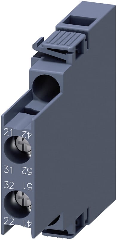 Apukosketin sivulle, 2 NC Virtapolku 1 NC, 1 NC 3RH:lle ja 3RT ruuviliittimelle R: 21/22, 31/32 L: 41/42, 51/52
