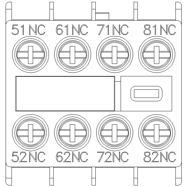 Apukosketin edessä, 4 NC Virtapolku 1 NC, 1 NC, 1 NC, 1 NC kontaktorireleille Koko S00 ruuviliitin 51/52, 61/62, 71/72, 81/82 Fyysisesti koodattu; vain kontaktorireleillä 3RH2140* ja 3RH2440* voidaan yhdistää (EN 50011 mukaan)
