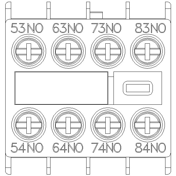 Apukosketin edessä, 4 NO Virtatie 1 NO, 1 NO, 1 NO, 1 NO kontaktorireleille Koko S00 ruuviliitin 53/54, 63/64, 73/74, 83/84 3RH2140/3RH2440 acc. standardin EN 50011 mukaan Fyysisesti koodattu; vain kontaktorireleillä 3RH2140* ja 3RH2440* voidaan yhdistää (EN 50011 mukaan)