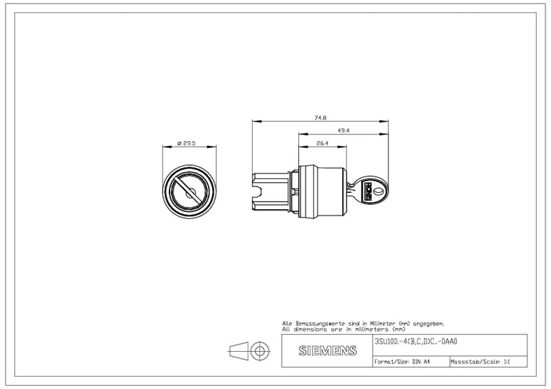 SIEMENS - Avainväännin - 3SU1000-4BC01-0AA0