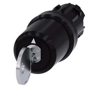 avainkytkin Siemens, 22 mm, pyöreä, muovia, lukkonumero SSG10, 2 avainta, 3 kytkimen asentoa I-O-II, salpa, käyttökulma 2x45°, 10:30h/12h/13:30h, avaimen poisto I+O +II
