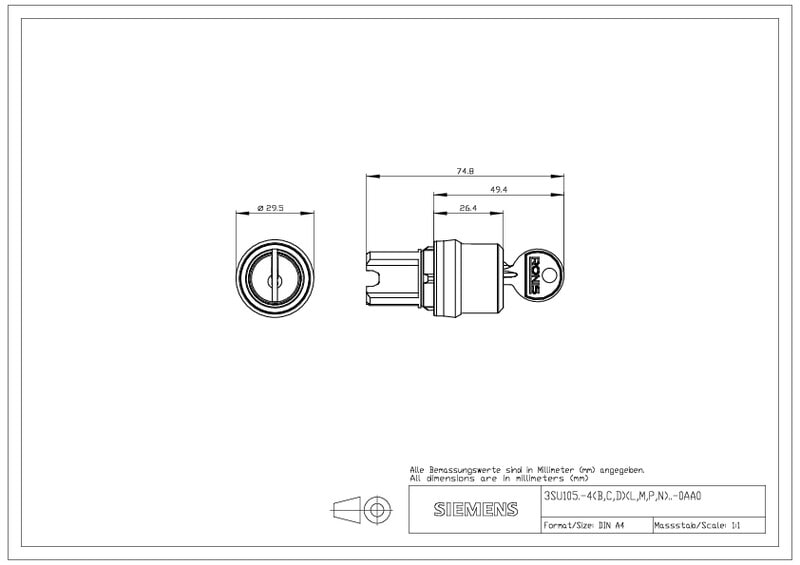 SIEMENS - Avainväännin - 3SU1050-4BL11-0AA0