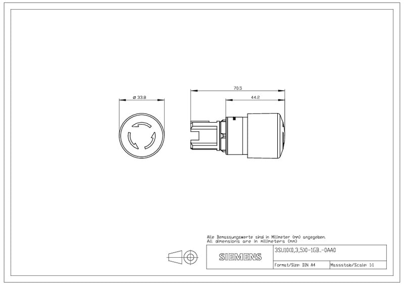 SIEMENS - Hätä-/seis painike - 3SU1050-1GB20-0AA0