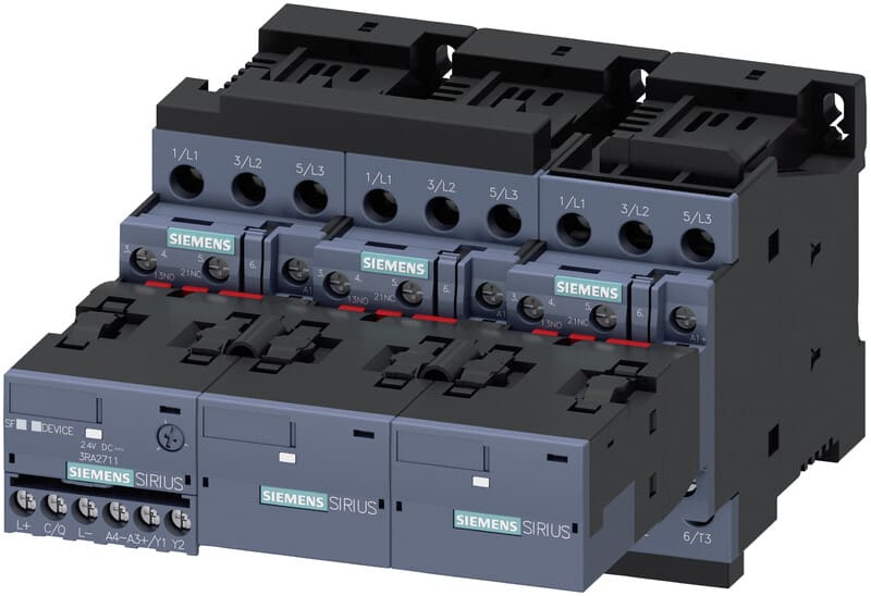 kontaktorikokoonpano tähti-kolmio (wye-delta) käynnistykselle, I/O-Link AC-3, 11 kW/400 V, 24 V DC 3-napainen, koko S0 ruuviliittimet sähköinen ja mekaaninen lukitus 3 NO + 3 NC integroitu