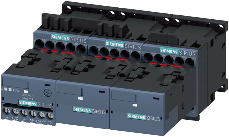 kontaktorikokoonpano tähti-kolmio (wye-delta) käynnistykselle, I/O-Link AC-3, 5,5 kW/400 V, 24 V DC 3-napainen, koko S00; Koko S00, ruuviliittimet sähköinen ja mekaaninen lukitus; 2 NO kosketinta integroituna