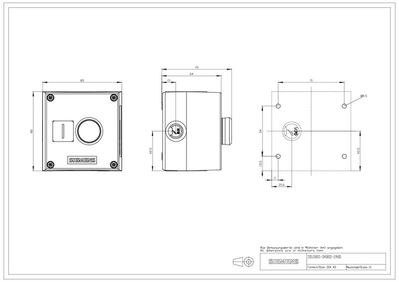 SIEMENS - Kotelo,muovi,1ohjauspaikka,vih - 3SU1801-0AB00-2AB1