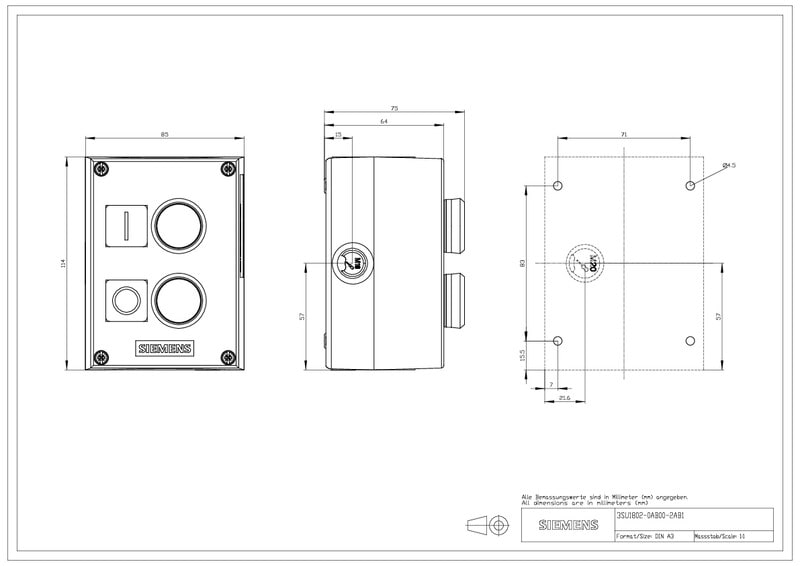 SIEMENS - Kotelo,muovi,2ohjauspaikka,vih - 3SU1802-0AB00-2AB1