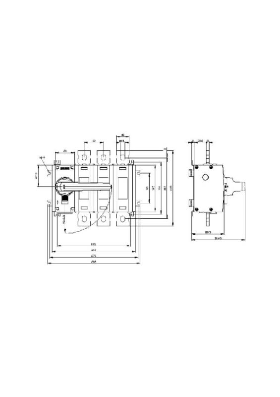 Kuormakytkin 500 A, koko 4, 3-napainen Edestä ohjattava sisältää vääntimen vasemmalla puolella Liitinkiskot